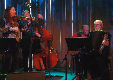 Bilde over: *Nyhus kvartett" lever videre. Sven Nyhus' datter, Åshild Breie Nyhus, har overtatt farens felerolle.