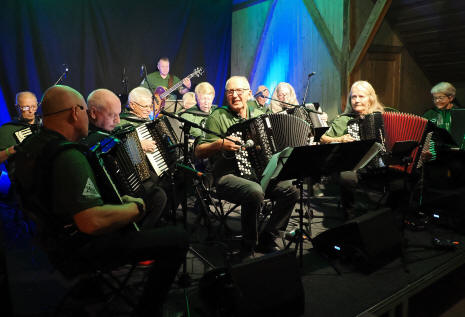 Fredag kveld var det solokonsert i storsalen på Rudi gard med Jon Faukstad (1944- ) som har vært heltidstrekkspiller i hele sitt voksne liv (bildet t.v.).