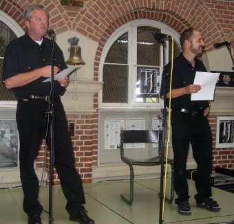 | Tom (t.v.) og Jørgen ønsker velkommen. | Den vakre salen på Læssøesgades skole med en utrolig akustikk. |