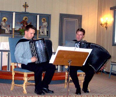 "Gotisk suite" av L. Boellmann er mye brukt musikk som man gleder seg over hver gang det spilles, og som selvfølgelig hører med på en kirkekonsert. Resten av 2. avdeling hadde en mer ”løssluppen snipp”, og duoen la nå vekk notene og repertoaret dreide seg mer over mot underholdningsmusikken. Stian spilte "I Ferapont-klosteret" av Vl. Solotarjov og Hans Vineshaugens brurmarsj i arr. Av J. Faukstad, mens Lars spilte en russisk folkemelodi, variasjoner over ”det er ikke vinden som bøyer grenene” av A. Surkov. Samtlige solostykker nydelig utført!