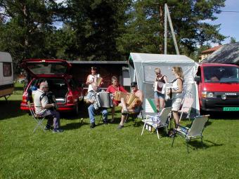 | Buskspill på campingplassen | Mer campingbusk, deler av Trysil 2rader'n varmer opp til kveldens spilleøkt. |