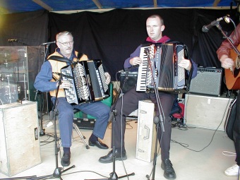 | Kalle og Ragnar Johnsen kalte seg "Father & Son". Litt stive fingre skyldtes vinden på brygga som løyet litt utpå kvelden. | Populært med bryggedans. |