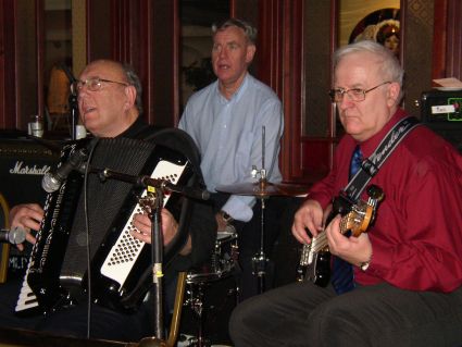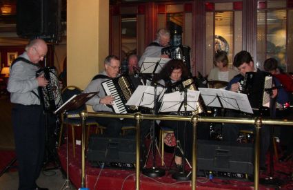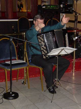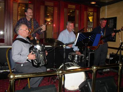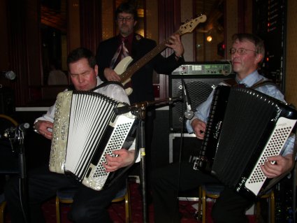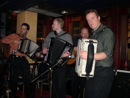 | Halden Trekkspillklubb fikk så vidt plass på scenen i baren. Det hjelper kanskje på "tette" akkorder ;-) ? | Danselystne hadde i alle fall ikke noe å klage over når det gjaldt musikkvariasjon. |