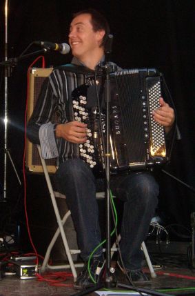 | Selv en proffmusiker må i blant konsentrere seg om "raske løp"...... | .... og det er ekstra hyggelig for publikum når vi ser at musikerne stortrives på scenen. |
