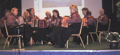 | Tydal Trekkspillklubb i aksjon. De hadde en knivskarp konkurranse med Selbu Trekkspillklubb, men Selbu måtte nøye seg med en 2. plass. | Tydal Trekkspillklubb vant også i år klassen for Gammeldans orkester div. I med 123 poeng. Klubbens komp ble hedret som det beste under hele NM! |