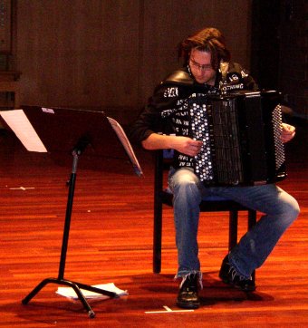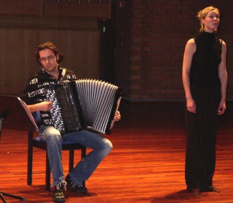 | Astor Piazzolla kommer man ikke utenom på en trekkspillkonsert. Espen Leite fremførte Koral som solist. | Deretter gikk han over til verk av Kurt Weill hvor han akkompagnerte sopranen Margrethe Førre i Surrabaya. Leite akkompagnerte også den neste melodien, da i en mer jazzrytmisk stil. |