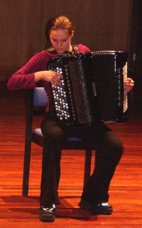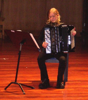 | Oddný Bjørgvinsdottir fremførte de 4 første satsene fra Barnesuite nr. 1 av Semjonov. | Mona Holm var eneste utøver på torader og trollbandt oss med Lille Ole av Tom Willy Rustad. Hun deltok også på trekkspill. Mona er dessuten den første studenten ved NMH som har torader som hovedinstrument. |