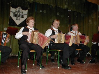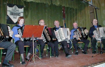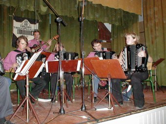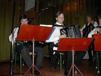 | NM arrangørene, Ringerike Trekkspillklubb, under ledelse av Steinar Eriksen tok turen helt til Østfold og viste at de ikke hadde slitt seg helt ut på NM-arrangementet i sommer. | Etter konserten, ble det et lite sceneskifte fra konsertoppsett til småbord og danseplass. |
