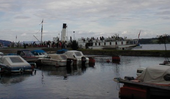 | Musettekulturen forbindes vanligvis med det urbane liv, men den søte musikken kan også godt anbefales som nytelsesmiddel på sjøen. | Vel tilbake i Gjøvik. Skibladner er på tur ut igjen for å sette av passasjerer på Kapp og Nes. |