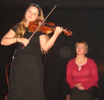 Et meget begeistret publikum applauderte høylydt og krevde selvsagt et ekstranummer. Jentene valgte da to drikkeviser fra Hardanger og Åshild måtte finne fram sitt bi-instrument, en kam. |