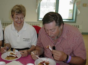 | Amerikansk frokost med svenske pannekaker med krem, sirup og syltetøy... Hopp kalori, hurra !!!! | ||||||