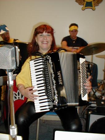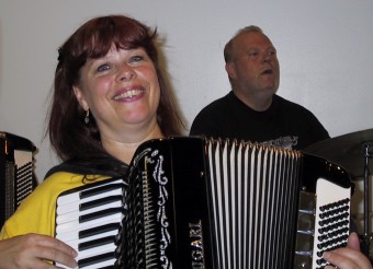 | Eric Johansson og Wayne Söderlund fra SAC. Wayne, også kalt Cajun Wayne. | Jeanne Eriksson Widman med sin mann, Randy Widman, på trommer. |
