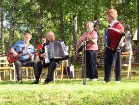 Arvika Dragspelsklubb arrangerte årets Bälgaspel på Skutboudden, Brunskog ca. 2 mil sørøst for Arvika. På "Gammelvala" ved sjøen Värmeln er det 4. året treffet har sitt tilholdssted. "Gammelvala" betyr "den gamle verden" og på Brunskog Hembygdsgård ligger det et 30 talls bygninger der det vanligvis råder full aktivitet slik som i gamle dager. Fredagskvelden ble startet med et felles grillparty med påfølgende dans på Logen. Været viste seg fra sin beste side og utescenen var godt besøkt lørdag ettermiddag med variert underholdning. I alt kunne vi telle rundt 10 ulike klubber og grupper, deriblant Jessheim Trekkspillklubb og Alvar Dahl fra Norge. Lørdagskvelden var det dans både på Logen og i "Grötköket" til over midnatt. |