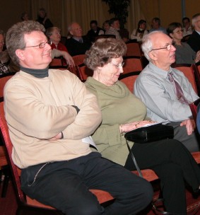 | Per Holth har vært konferansier på treffet i flere år. Her trofast i Strandefjorden Sal. | Lydmannen er også viktig. |
