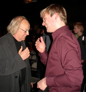 | Kammerkonsert med Oslo Filharmoniske orkester og Frode Haltli - akkordeonkonge Bildet - Både komponist Arne Nordheim og Frode Haltli syntes begge å være meget fornøyde etter konserten. |