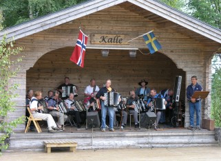 Det finnes 2 scener på området som ikke uventet har fått navnene ”Kalle” og ”Elin”. Her var det dansemuligheter både fredag og lørdag til ulike orkestre som: Svänggängen, Virus, Finnskogbälgarna, Fusel & Svartkoppp, Liv i Fillom, Solør Trekkspillklubb m.m. Arrangørene hadde også fått i stand en Jularbokonkurranse. Lørdag kveld underholdt bluegrassbandet Lonesome Mountaineers, som er et av Sveriges yngste band i denne stilarten. En fin kontrast med gitarer, banjo og akustisk bass til trekkspillgruppene. |