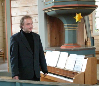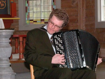 © fo2:2re Jon Inge Sigerland er organist i Selje Kyrkje, men avsluttet konserten med "Konsertsuite for trekkspill og klaver" med titler fra eventyrverdenen i 7 satser av tsjekkeren Vaclav Trojan sammen med Håvard Svendsrud. |