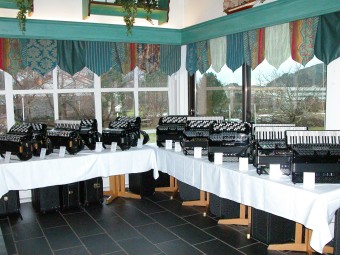 | 2RE-2NE-R2 3KKSPILLTROLL ANS var invitert til å delta på trekkspilltreffet med trekkspillutstilling, noe som skapte stor stemning blant treffdeltakerne og andre hotellgjester som i utgangspunktet ikke visste noe om arrangementet. | Og sjelden har vi blitt tildelt utstillingslokale i så vakre omgivelser! |