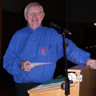 | Kveldens konferansier - en storfornøyd Bjørn Ringstad fra Trøgstad/Båstad Trekkspillklubb | Trekkspillkameratene |