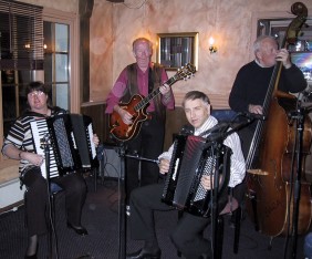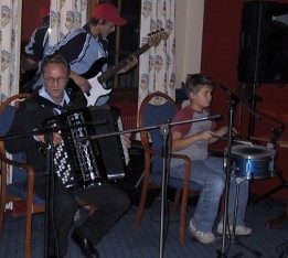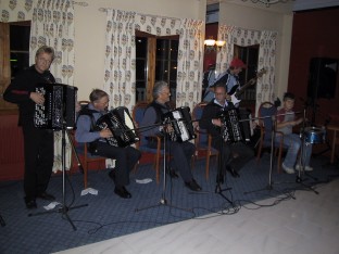| Liv Rønningen kan mer enn å spille trekkspill og arrangere. Hun dukket også opp på scenen da det svingte som mest og beviste at hun også kan synge. | "Geir Harrys" gruppe har startet opp igjen og låt veldig bra. |