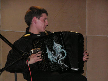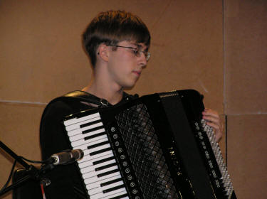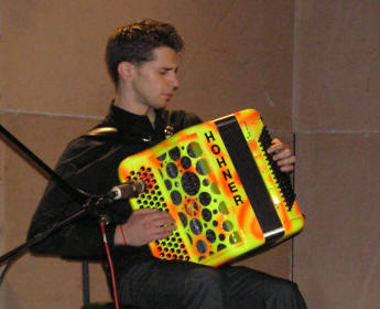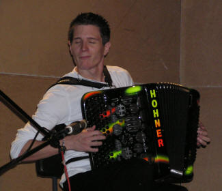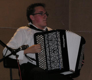 | Ingen tvil om at Coupe Mondiale foregikk i byen. | Nr. 2 f.v. Kevin Friedrich, president i Confédération Internationale des Accordéonistes (CIA) |