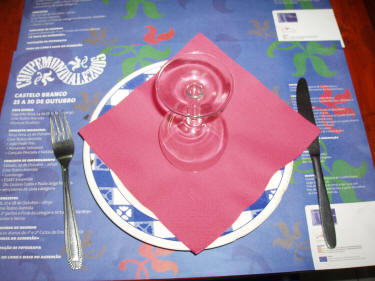 | Byens restauranter hadde fått utdelt spisebrikker med info om Coupe Mondiale. | Castelo Branco var en vakker gammel by. Her utsikten fra Hotel Tryp Colina der flere deltakere og CIA-ledelsen var innkvartert. |