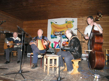 Både det norske og svenske flagget var på plass ved scenekanten – det svenske denne gangen til ære for ”Leffe”. I tillegg var en svensk nærradio på plass og gjorde opptak fra treffet. ”Etter fjøstid” ble nemlig ”oppdaget” av en nærradio i Sverige da de spilte på Ransäter i fjor. De ble så spurt om å være med i studio for å gjøre opptak. Ellen i ”Etter fjøstid” kan opplyse at treffet de 4 tidligere årene har hatt besøk av gruppa ”Ohappa” fra Gävle med hele 70 mils reisevei! |