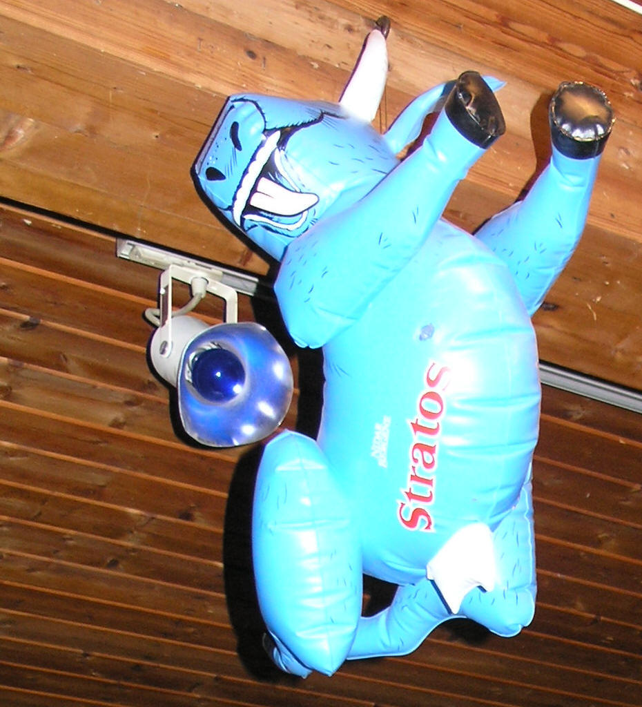 For øvrig hadde arrangørene forsøkt å gjøre ”Ignarbakke” om til et fjøs etter beste evne og assosiasjoner. Ved nærmere øyesyn oppdaget vi at serveringsdisken hadde påmalte kuskinnsflekker, den blå Stratos-kua ”svevde” i taket ved scenekanten og Tine-kua var på plass som scenebakgrunn.