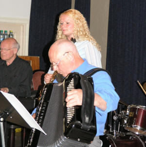 | James Dickensson er ansatt som kantor i Sør-Fron, men kommer fra England. I tillegg er han aktiv jazzpianist og arrangør. Han gir i disse dager ut sin fjerde jazz-CD. James har doktorgrad i norsk jazz som han avla ved universitet i Manchester i fjor. Han var i sin tid med på å starte musikklinja ved Vinstra vg. skole. I august slutter han som musikalsk leder for storbandet "Fossajazz" som han startet i 1994. | Gjestespiller Finn Kråbøl på trekkspill. Han er en gammel kjenning i musikkmiljøet i Lillehammer-området. Han dukker stadig opp i forskjellige sammenhenger, så som i gruppa "Swingtetten" eller som en vikarierende klarinettist i "Gosen Gla'jazz" på Skibladner. |