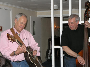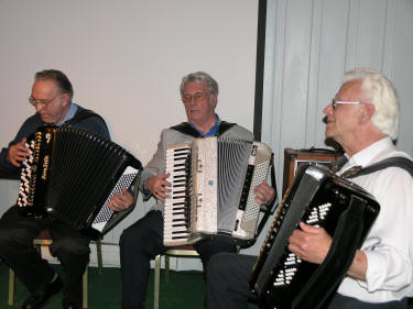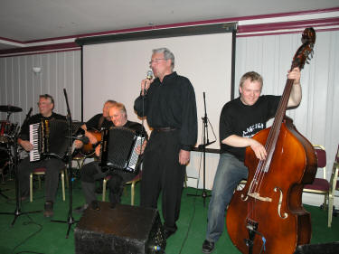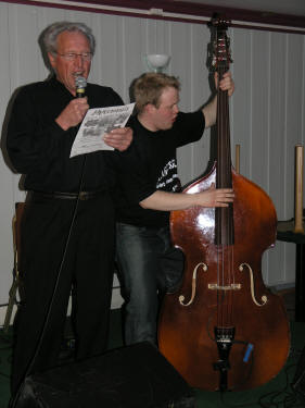 | Konferansier Ivar T. Dagenborg (t.h.) | Randsfjordtreffet fikk i året sin egen sang her framført av Ole Ellefsæter som forsanger. |