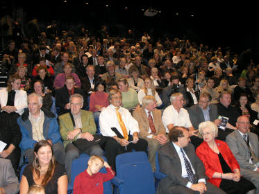 | God publikumsoppslutning. Her fra premieutdelingen i Multisalen. | Dommere og delegater fra CIA (Confederation International des Accordeonistes) |
