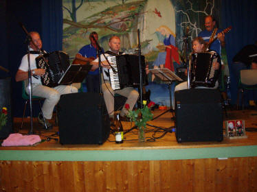 Deltar man på trekkspilltreff snapper man fort opp hva ordet ”buskspill” betyr. Dette innebærer blant annet at man henger seg på i samspill med andre som man måtte kjenne eller ikke kjenner fra før – for dermed å flytte disse over til ”kjente-gruppen”. I sommerhalvåret skjer dette gjerne utendørs, men i et nordisk vekslende klima har dette ført til at det kan være vel så praktisk at ”buskspill” foregår i innendørs former. ”Böskspelarnas Dragspelsklubb”, avdeling Norge, har like godt funnet et fast sted å utøve denne formen for trekkspilling – nemlig på Fjellvang i Stokke. |
