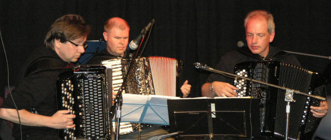 Det er aldri for sent å starte der man slapp – selv om det er mer enn tjue år siden. Frank Andresen (t.v.) og Tore- A. Ødegård (t.h.) hadde gjenopplivet gamle ”kunstner” og fremførte ”Tango Simoni” og ”Synkende sol” av Erling Eriksen. For anledningen hadde de med seg Roar Hensvold (midten)som en god støttespiller. |