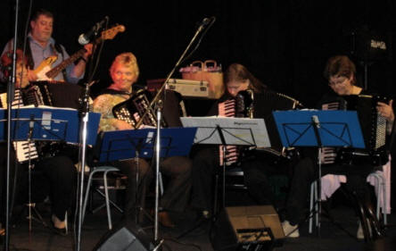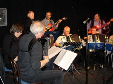 | Varteig Trekkspillkvintett med besetningen på seks. | Kjell Sterkerud bak sangmikrofonen |