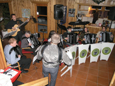 Mer dans og fest ble det til langt på natt etter en liten forflytning til Moss Tennisklubbs lokaler på Jeløya. Her spilte nemlig MSK, deler av Halden Trekkspillklubb, Moss Trekkspillorkester, Gamle Aker Spelemannslag, Nonstop og Magne Saure på keyboard opp til dans. Om det ikke ble hopprenn etter nyttårskonserten hadde man uansett alle muligheter for å fullføre nyttårsforsettene med mere trim og la dansen fremkalle liv i uante muskler....... |