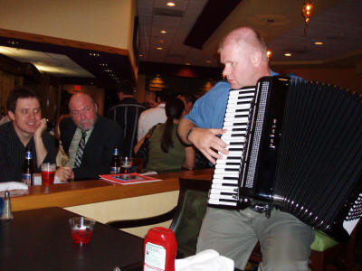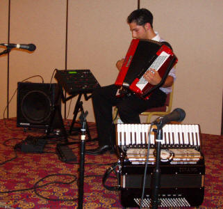 Festivalorkesteret, under ledelse av presidenten i American Accordionists’ Association, Linda Soley Reed, rakk også å øve igjennom stoffet de skulle fremføre på konserten lørdag kveld. Karen Adam hadde også i år hentet fram noen ekstra godbiter foruten bl.a. Nick Ballarini og Carmen Vitanza. Tony Lovello virket å være i storform etter noe ryggproblemer tidligere år. Hans glissandoer og belgristinger er blitt hans varemerke, mens han samtidig ”stroller” mellom publikumsradene. |