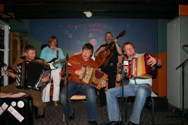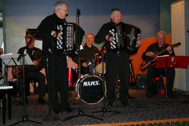 | Gruppa "5 Borg" med meget god swingjazz | Tones Orkester skapte trøkk med sin spesielle spillstil |