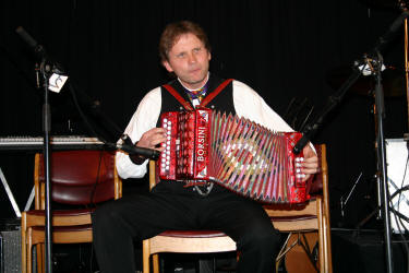 | Halvard Haugen fremførte en hyllest til Storefjell og trekkspilltreffet - til melodi av Nibstads "Livet på Storefjell" | Lars Nibstad fremførte flere av sin fars låter under konserten |