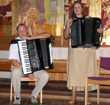 Om man løfter blikket litt opp i skråningen idet man passerer IKEAs nye gigantbygg i Asker ved E18 i fin fart, får man øye på Holmen kirke. Her har det i flere år vært arrangert sommerkonserter – og det i beste fellesferietid. Til tross for tidspunktet var det mange som hadde funnet veien 18. juli for å høre på Askerjenta Lena Rist-Larsen og svenske Jörgen Sundeqvist. De to ”debuterte” som duettpartnere i Stovner kirke i vinter, og dette har tydeligvis gitt mersmak. Ettersom tema for kvelden var glede, falt det dem naturlig å starte med den lette og lystige Norsk dans nr. 2 av Edvard Grieg – bedre kjent som ”Norge Rundt”-vignetten. Utgangspunktet var en firhendig klaverversjon arrangert av nylig avdøde Galla-Rini, som forøvrig har vært en av Jörgens læremestere. Russisk originalmusikk for trekkspill fenger alltid, og det gjorde også ”Den lustiga klockan” (fritt oversatt av Jörgen) av Anatoly Shalayev.