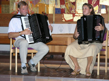 Pietro Frosini har laget mange vakre konsertvalser. Jörgens valg falt på ”Vårserenade”, eller ”Serenata Primaverile” som den originalt heter, i et arrangement av Anders Grøthe. Lena har en spesiell forkjærlighet til barokkmusikk fremført på trekkspill. De fremmøtte fikk en ytterst iørefallende smakebit fra et bitte lite stykke, Badinerie, av Bach. Franskmannen Olivier Metra har samlet både fransk og spansk folkemusikk, og den utvalgte serenaden tror vi de færreste av publikum hadde hørt før.