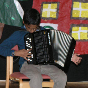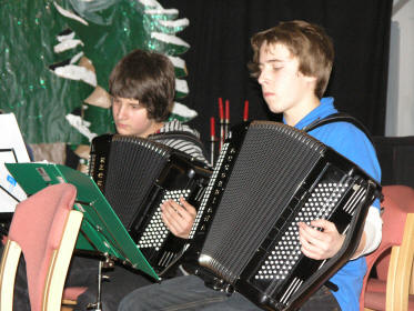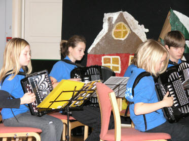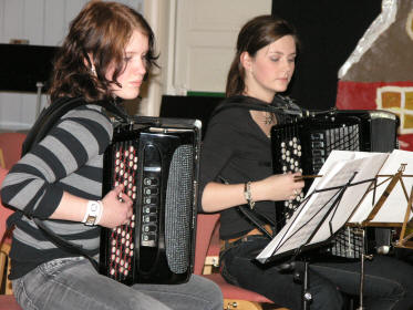 Live Berger Brekke og Ida Løvli Hidle, som gjorde en formidabel innsats under VM på trekkspill i Asker i oktober i 2006, har vokst ut av Kulturskolen, og befinner seg for tiden som musikkstudenter i Trondheim. Derfor var Kenneth Larsen (16) blant de eldste på kveldens konsert og hadde en fin fremføring av Vittorio Montis ”Czardas”. |
