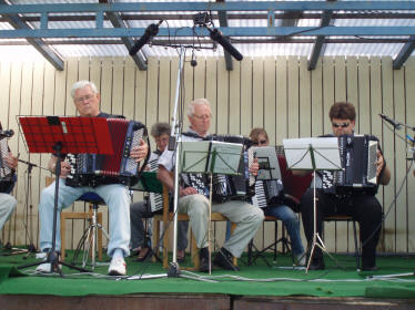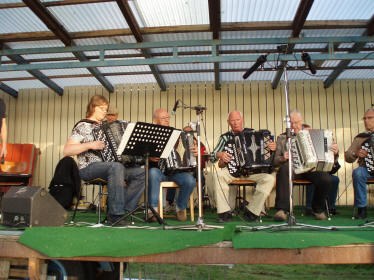 1.-3. juni 2007 dro han like godt i gang et nytt trekkspilltreff på Laxsjön Camping og Friluftsgård i Dalsland i Sverige. Plassen har en sentral beliggenhet ved vannet Laxsjön mellom Billingsfors og Dals Långed, og har god kapasitet til campingvogner samt en del hytter for overnatting. Dessverre plasket regnet ned hele fredagen, men trekkspillere er ved godt mot og vendte ikke nesa hjem for det selv om det gikk litt trått med dansen utendørs. Lørdag morgen våknet man derimot til solskinn og blå himmel, og det ble hyggelig å overvære konserten i det fri på ettermiddagen. Gerd og Aage Thuen framførte bl.a. polkaen ”På akebrettet” som er tilegnet dem, men vi trenger neppe å ta fram dette på en stund. Lørdag kveld var det musikk og dans til utover mot midnattstider. |