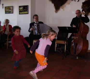 Søndag 4. november var det mer enn høner og kaniner som trakk folk til Nordre Lindeberg gård, som ligger godt synlig plassert langs E6 på vei ut av Oslo. Gården er et fint tilbud til byens befolkning og drives av Bydel Alna som denne søndagen inviterte til kafékonsert med duoRETRO. Duoen presenterer fransk musette – retro og inn i tiden, og består av Håvard Svendsrud på musettetrekkspill og Kay Hartvigsen på bass. Det var ikke bare de voksne som fikk gode fornemmelser av de franske tonene. Også barna satte pris på den livlige musikken. God innlevelse i fremføringen og folkelighet skapte en utrolig stemning. Kaféen var stapp full av folk i alle aldre, og mange av de yngste benyttet anledningen til å danse. |