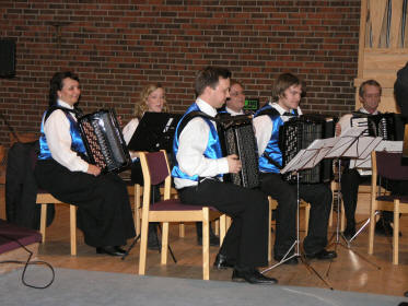 Deretter ble det helnorsk med duoen Stian Aase og Lars Røyseng på trekkspill, som også kaller seg Duo Jupiter. De deltok i programmet Kjempesjansen og var med og representerte Norge i VM på trekkspill i fjor høst. I Ekholt kirke framførte de Holbergssuiten, 1. og 5. sats, av E. Grieg. Svenneprøven på trekkspill er vel et forbilagt stadium for både Lars og Stian, men folkemusikeren og trekkspilleren Jo Asgeir Lie fra Ål hadde laget dette stykket opprinnelig til sin kone Ingunn S. Sørbøen Lie med nettopp denne tittelen, og har arrangert den for Stian og Lars senere – ”Svenneprøva”. |