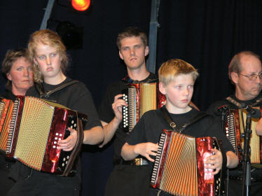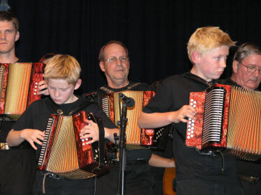 | "Bæljtrøkken" - Kim Nielsen (trekkspill t.v.) og Dag Nordli. Willy Jacobsen på gitar i bakgrunnen. | "Bæljtrøkken" - Eivind Kjernsli |