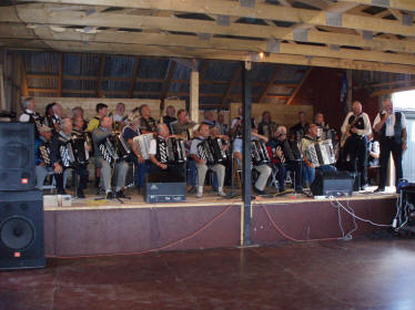 Vertskapet på Persmoen, Kari Bråten og Jan Nygård, har byttet ut en mindre vellykket kornproduksjon med tilbud om aktiviteter og opplevelser for folk i alle aldre. Den offisielle åpningen av Aktivitetssenteret var riktignok i august 2003, men etter dette har det blitt både lavvo og putballbane, og deres nyeste påfunn var altså en festival for trekkspillere. 80-årige Leif Fjeldbu har bistått med organisering av den musikalske delen av festivalen. |