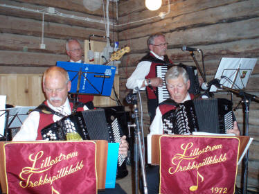 | Gamle Aker Spelemannslag (GAS) øver litt før kveldens dansespilling. | © fo2:kjellnor GAS |