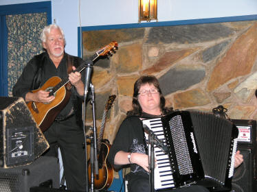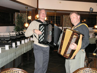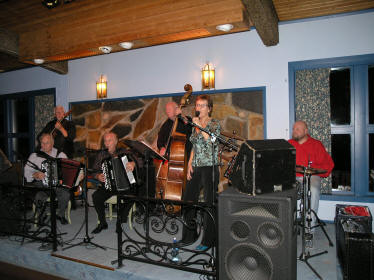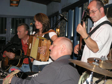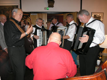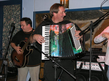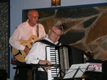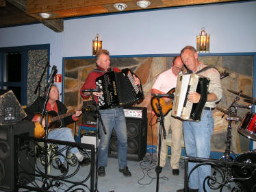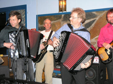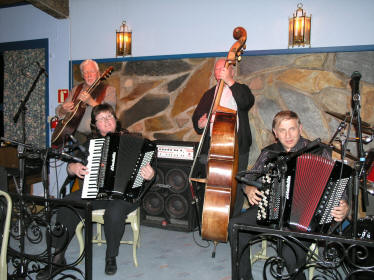 | Den ene halvdelen av Kalle Johnsens kvartett... | ....og den andre halvdelen. Her Kalle selv med trekkspillet. |