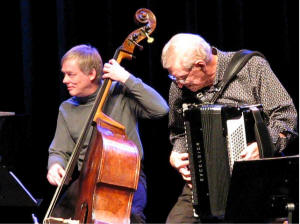 Under den drøyt timelange konserten var det bare å lene seg tilbake i stolen og se hvordan musikernes humør og ikke minst humor dem imellom smittet over på publikum. Her stod godbiter i kø som "Gone With The Wind", "Bye, Bye Blackbird" og "Here Is That Rainy Day", selv om det ironisk nok det var vinterens første snøfall på østlandet denne dagen som Art stadig vekk hadde kommentarer om. Hans solointro til "What's New" fikk nesten fram tårene i øyekroken. De fleste av de velskrevne arrangementene ga hver enkelt av musikerne sine intrikate utfordringer, men Art hadde også passet på at trekkspillet fikk en fremtredende rolle ved å føre melodistemmen. Vekselvis hadde også gitarist Fischer mye av melodiføringen backet opp av akkorder fra trekkspillet. Dette sammen med et bunnsolid komp på kontrabass, slagverk og vibrafon skapte et tilnærmet perfekt resultat. Små "feilskjær" innimellom virket bare sjarmerende på publikum og er slik det skal være når man er 88 år - selv fra en proffmusiker. |