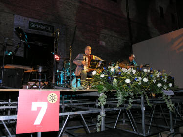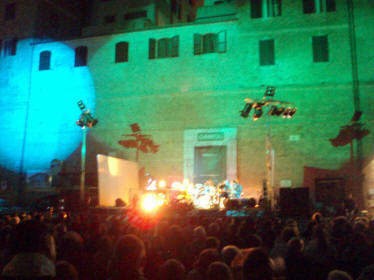 | Med bymuren som naturlig kulisse beæret trekkspilleren Vincent Abbracciante Borsini-familien i forbindelse med bortgangen av et familiemedlem | Fullmåne, fin temperatur og stemning |